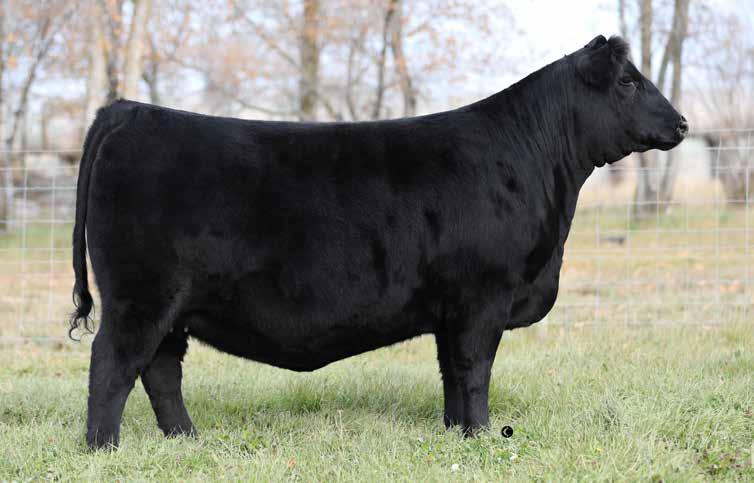 An absolute heifer bull by design and on paper. His dam is wonderful Hard Evidence daughter that stems from the Young Dale Grace 102Z family. Not only is he a really well made heifer bull, with our #1 BW ratio, he then came in with a WW ratio of 104 with a YW ratio strong enough for a life ration of 103. He has the makings of calving ease bull but without doubt he can definitely bring in some pay weight. His dam is a beautifully made female with an excellent udder and the quality phenotype of a 2nd in class show heifer at the National Angus Show. Again, here is a bull that will be a strong female producer in the future with excellent foot quality. His maternal sister by Firebrand was the $9250 high selling bred female in 2021 Keystone Klassic selling to Rockytop Cattle Company.