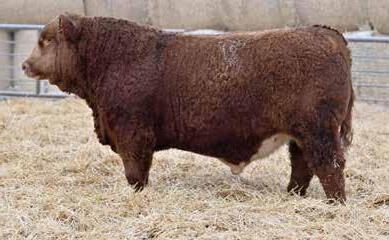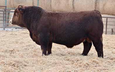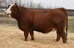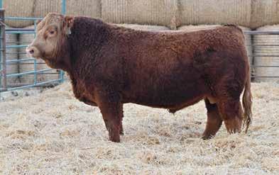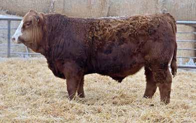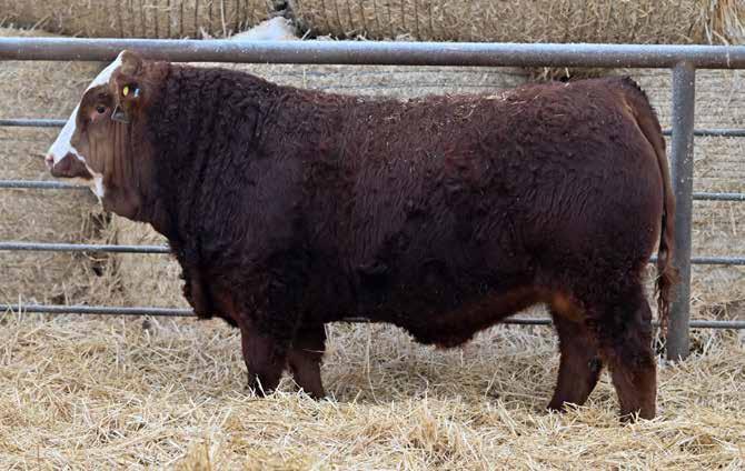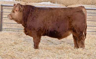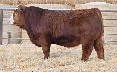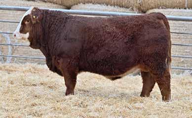 This solid red meat machine sired by Hot Shot in a great example of why the Fleckvieh/red purebred cross works so darn well. Easy fleshing with great size and length Redford is a stout made bull. His Vindicator dam was a big ribbed cow with huge shape and dimension to her. We sold a maternal brother to Clover Bar Simmentals.