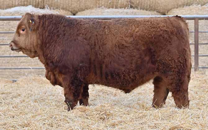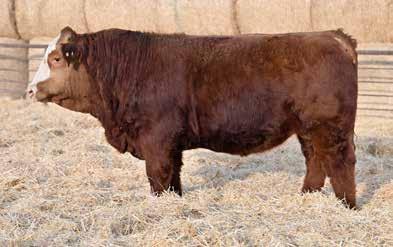 “Joey” is a red blaze face son of Moe’s Mohawk out of a powerful Merchant daughter. The udder quality on 135J’s dam is exceptional. This moderate made bull is a nice mix of calving ease and performance. One of the quietest bulls in the long yearling pen 135j is a user-friendly blaze face bull that would work wonders on your second calvers.