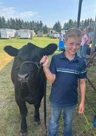 The Nostadt family purchased this steer in last years sale. He has been undefeated at the shows this year. Congratulations. Shown by Grandson, Greyson Kiebert.