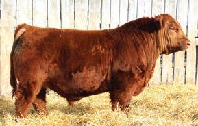 RED RAFTER SJ BARB 37K had an actual WW of 690lbs on September 14th. With her feminine smooth front end to her big middle and strong hindquarters, she is a classy lady. Her dam goes back to a great cow family from the Glesbar dispersal that we think very highly of. Her sire TRAEGER was wide topped, deep quartered, well muscled and dark cherry red coated. We lost him this year only 13 days into breeding due to an injury, and are sure going to miss him. He was that bull that you could go out with a pail of grain and a halter and catch him and lead him anywhere, on foot or with a