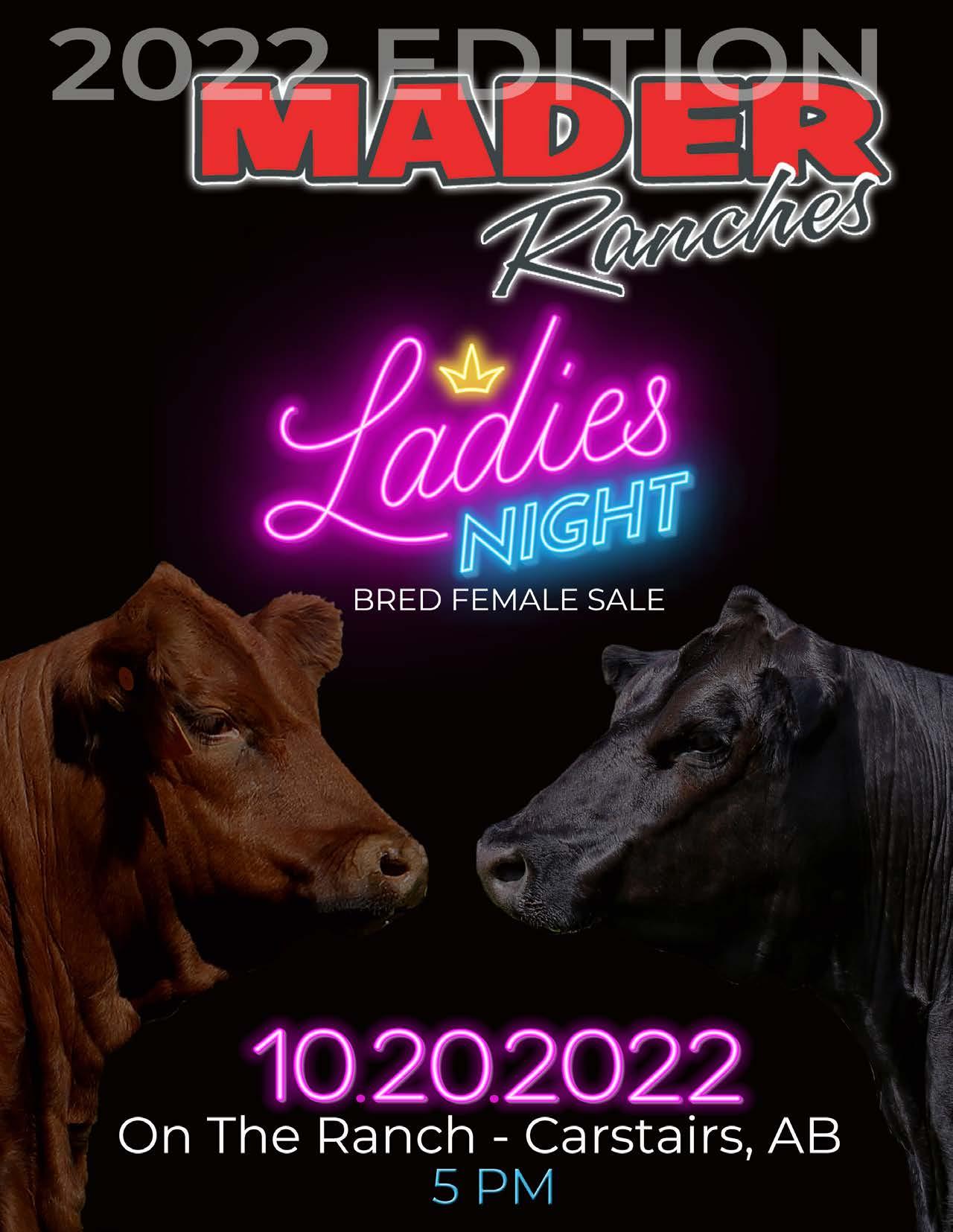 Welcome to our 2022 Edition of Mader Ranches Ladies Night! As I sit down to write this, most of the cereal harvest has been completed across prairie provinces, with yields and prices holding solid and the weather allowing people to get straw baled up, cattle shuffled onto fall pasture, calves sold, and get caught up on the “To Do Lists!” The optimism in the cattle market is very rewarding seeing high prices on cull cows and bulls, a very strong yearling market, and calf prices that are still climbing! Although a drier end to our summer, the feed inventory sounds like it has been replenished in many areas, and it is rewarding to see farmers and ranchers getting compensated for their efforts and hard work!