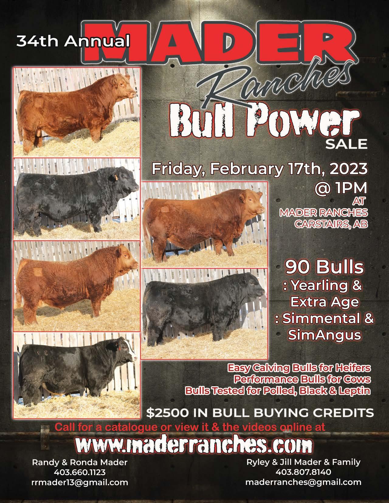 We hope we can host you, at the ranch, Thursday, October 20th! Cattle are available for viewing anytime that day or the day before, the sale will start at 5pm with a steak supper to follow. We also ask that if you are able to attend the sale, that you plan to stick around afterwards for refreshments and live music, to help us celebrate a few special anniversaries this year, Randy and Ronda at 45 years, and Ryley and Jill at 15 years! If we cannot make the sale, please feel free to tour the farm ahead of time, make arrangements to bid online, or please contact anyone of us from Mader Ranches or our trusted sale staff to assist you with questions or bidding. This night we celebrate the Ladies of our operation, please make sure to bring the ladies of yours!