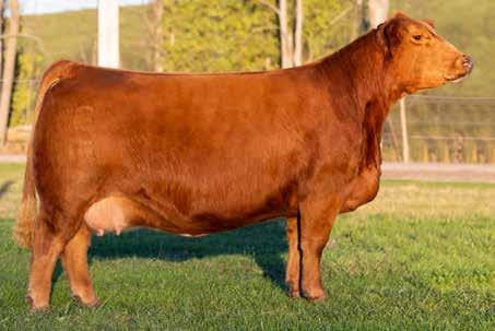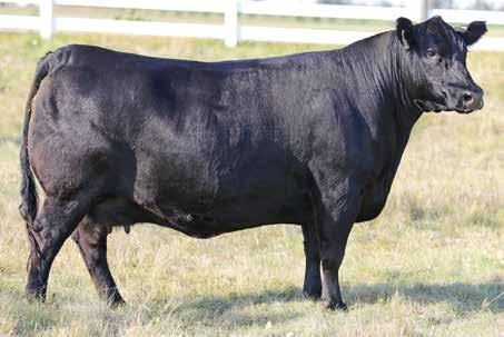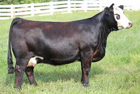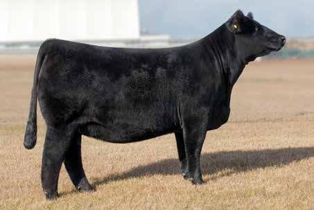 seller that is phenotypically stunning. Easy doing, soft made with a great maternal look with added hair and dark complexion. Her ability to get around with ease on a sound set of feet and legs while carrying as much natural shape and dimension is commendable, and the added bonus of extra extension through her front end with a beautiful Angus skull is the cherry on top! We feel her outcross pedigree and unmatched phenotype, coupled with all the extra bells and whistles make her a big time donor female to build a cow family around. Flush her to the bull of your choice and reap the rewards as her sons will be extremely well accepted and her daughters will quickly be placed on the untouchable list!