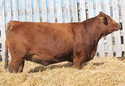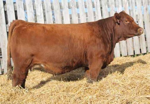 Macy combines exceptional length of spine, a blood red hairy coat, and a great disposition into a soggy easy doing package. Here is a powerful heifer with that awesome pear shape, and a perfect udder developing. Macy is out of a very feminine yet powerful dark red cow that always has calves we admire. She has had 2 sons sell through our bull sale and one daughter still working in our herd.