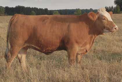 ONTARIO SIMMENTAL SOLUTION SALE22 Gibbons Farms Vaughn Gibbons Stevensville, ON 905-382-3879 v.gibbons@vgibbonscontracting.com This is a real good polled cow I bought from Harry and Frank Robblee. She gave me a set of split twins this June and sells open with no calf. I chose to leave her open so the new buyer has the option of a fall calf. TRYON GEMMA FF20C PT1157913 | 7 APRIL 2015 | FHC 20C | POLLED52 DOUBLE BAR D EVEREST 103U DOUBLE BAR D SPITFIRE 20X VIRGINIA MS TREASURE 4T OSF 19Z TRYON GABI FF27U TRYON GINA DOUBLE BAR D EVEREST 4R DOUBLE BAR D JERICO 5L VIRGINIAS RED MARCIANO FF VIRGINIA’S MS WEST PATTY IGLHOFF BGR ARTHURS KATHERINE BAR NONE MAINSTREAM R.H. PATRICIA CE BW WW YW MLK MCE MWW 4.6 4.9 68.3 98.2 33.8 2.9 67.9 Act BW Adj WWAdj YW 80 n/an/a Here’s a wide topped , good footed cow I bought from Rick Blanchette. I really like the wide muzzle and skull she has with the dark red solid pattern. She sells open since she had a late June bull calf which I sold to my neighbor. The new buyer has the option for a fall calf. Breed her to a homo polled bull to add some power. RICOCHET FAITH 83F 1245015 | 5 JANUARY 2018 | RLB 83F | HORNED53 GGT WILLY JOE 64Y JNR’S WARRIOR JNR MS SAVANNA WNLP USHER 32U RICOCHET CORINA 5102C RICOCHET XINGER 104X GREAT GUNS TX BUDDY 102P GREAT GUNS TX MOLLY 104P PORTER’S RESERVE 20R JNR’S SAVANNA PORTER’S RESERVE 20R RRV NATALIE VIRGINIA REDFORD FF DFM GYPSY 766G CE BW WW YW MLK MCE MWW 2.7 5.2 69.5 96 29.2 1.7 64 Act BW Adj WWAdj YW 93 n/an/a This is a nice dark red heifer out of the super good Titanium bull. She’s an embryo calf out of one of Rick Blanchette’s top cows. She is bred early to Rugged R Cavill for an easy calf. Bred AI to Cavill on Mar 17/22 GIBBONS 5H T1316670 | 24 MARCH 2020 | GIBS 5H | HORNED54 JNR STEELE 248Z JNR’S TITANIUM MFI LOLITA 8050 VIRGINIA REDFORD FF RICOCHET YALANDA 11Y WNLP WINALTA 10W JNR’S SALTON JNR’S GRELLI 440P SHAWACRES JAHARI 50L ANCHOR “T” FRAULEIN 37D SAF 73H ANCHOR “T” BARBI 46K PORTER’S RESERVE 20R RRV NATALIE CE BW WW YW MLK MCE MWW 8.9 3.5 64.8 90.8 28.8 3.9 61.2 Act BW Adj WWAdj YW 90 n/an/a $2,000 FullCircle Farms $4,250 Jamie Guttormson $7,250 KSLSimmentals