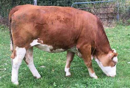 Simmentals, PSE Fren is a very typical cow that she puts everything into her calves and breeds back with no concerns. Jay is very