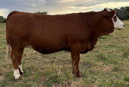 Shadow is a tremendously thick, deep solid red heifer out of a black cow. She is one of those heifers that needs to get her scratches whenever she can and usually must be pushed out of the way. Longevity is a trait that runs in her family with her granddam leaving at 17 years of age. Her calf by Century Lincoln 310L (Rugged R Cavill x Sibelle Sugar Ray) should be an exciting prospect. Bred to Century Lincoln 310L on May 21, 2025 Ultrasound safe in calf