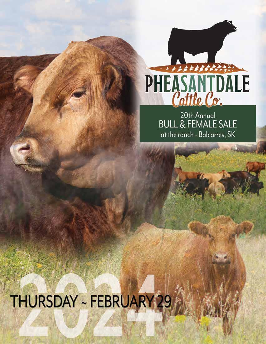 THURSDAY, FEBRUARY 29, 2024 12:00 p.m. Pre-sale Lunch 1:00 p.m. Sale AT THE FARM- BALCARRES, SK 22 KMS EAST OF BALCARRES ON HWY #10, 1 KM NORTH or 33 KMS WEST OF MELVILLE ON HWY #10, 1KM NORTH or 3.2 KMS WEST OF JUNCTION OF GRID ROAD 617 & HWY #10, 1KM NORTH Google Map - Pheasantdale Cattle Company for directions
