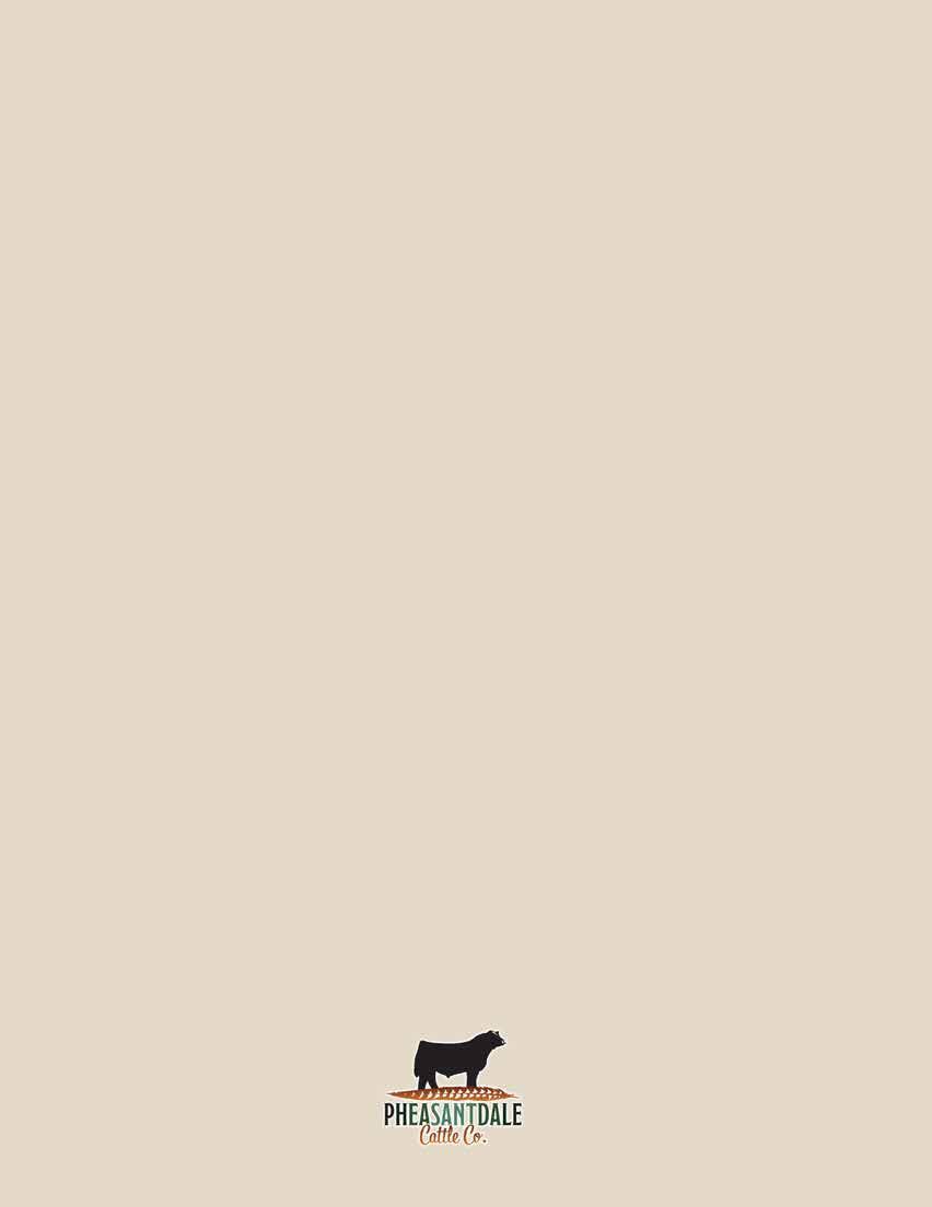On behalf of everyone here at Pheasantdale Cattle Company, we want to welcome you to our 20th Annual Bull and Female Sale. To say that 2023 was a whirlwind year is an understatement, but we have complied an impressive group of yearling bulls, coming 2-year-old bulls and open females, and we can honestly say these are the best yet. Over the years we have been compiling a group of prolific females to build this powerful set of calving ease, maternal orientated bulls that are built around structure, fertility, longevity and much more. As you study the catalog you will find the absolute best, we have to offer from front to the back of the catalog. Rest assured we have sorted this offering for 100% soundness and fully guaranteed to do their job efficiently. We strive to make it our mission for you, our customers to purchase problem free herd sires to add value to your operations.