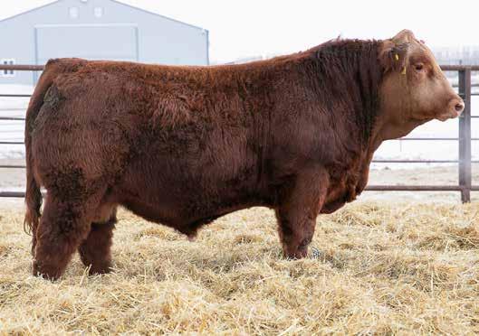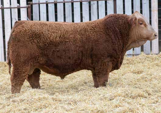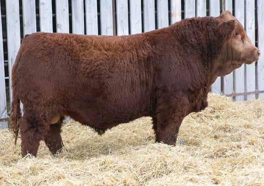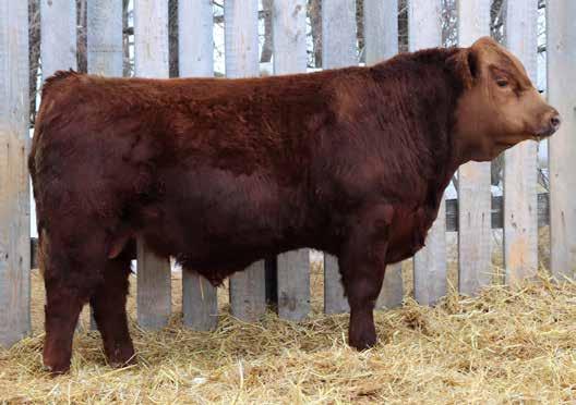 - Actual weight on Jan.7- 1295 lbs. - Docile, Big Footed & Wide Topped - Great Hair Coat & Deep Cherry Red - Bought from Oakview Simmentals as a Bred in the Pembina Triangle Sale.