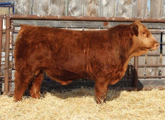Our feature Red Angus this year this coming in hot son is pretty neat, built solid from the ground up. His dam is one of our power red cows who raised our bred heifer that sold in the fall in Red Round Up.