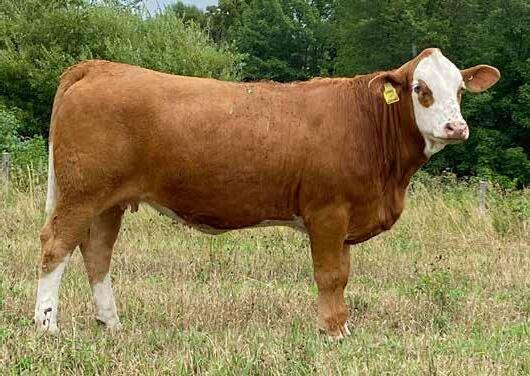 Nola est la génisse la plus puissante de l’offre. Elle est sans aucun doute l’une des génisses sevrées les plus lourdes et elle reste attrayante même avec une croissance superbe ! Elle a remporté de nombreux succès en compétition et c’est un plaisir de travailler avec elle. Nola est très calme et facile à garder ; elle adorerait participer au YCS l’année prochaine. Elle est la première progéniture à être vendue du taureau du troupeau de Silver Lake Simmentals, mais ce ne sera pas la dernière. Plus tard cet automne, elle fera partie de la sélection, lors de l’exposition nationale Simmental à Victoriaville, Qc.