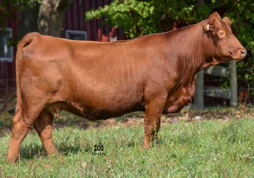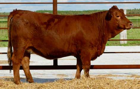 Extremely long bodied red female. Her dam is from the elite herd of Todd’s Simmentals, Todd’s Crimson Cloud 28Y. Her 8 year old sister is still working in our herd. She raises the good ones. Une femelle rouge au corps extrêmement long, sa mère est issue du troupeau d’élite des Simmentals de Todd, Todd’s Crimson Cloud 28Y. Sa sœur de 8 ans travaille toujours dans notre troupeau. Elle élève les meilleurs.