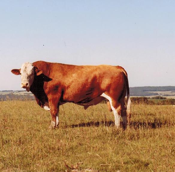 • A younger bull that I’ve admired all year. Wide topped, round quartered, with good feet and legs.