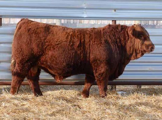 • Deep red, lots of hair on this loosehided, easy fleshing bull