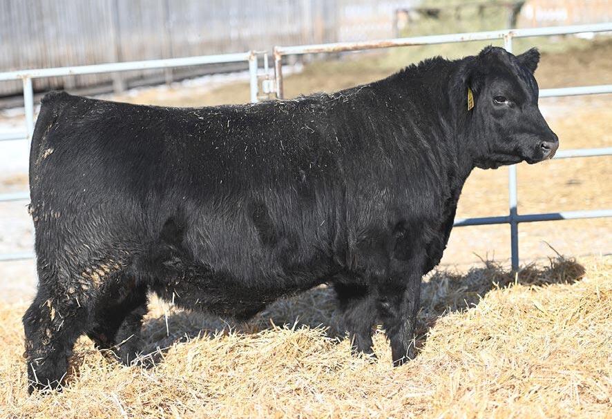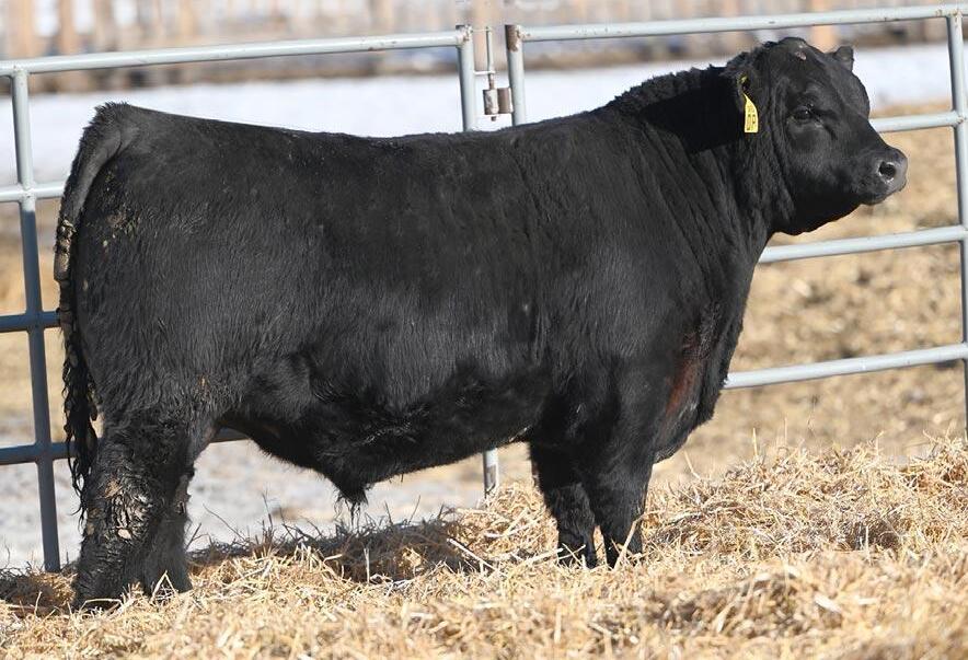 This is an exceptional bull on paper and even more impressive in terms of his phenotype. Wide based, long spined, big bodied, sound made, with excellent feet and legs. Perfect bull to put the punch and power back into your Angus cattle. A breed changer from a growth performance and body mass standpoint.