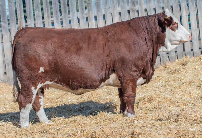 Blood red, hairy, balanced, ideal teat spread, easy keeping and one that is built with true Simmental character of quality. Back to the great Seanna cow family that has been so productive and this female will be no exception. Her dam was purchased from Lewis Farms which is a program that we think a lot of and will continue to invest in to their cattle when they turn out as good as the cow behind 1M. On top of all her quality is a strong EPD profile that is double digit CE to triple digit YW that lands also lands her in the top 25% for BW, CE, WW and top 40% for YW while impressively also being in the top 15% for MCE, CW, REA & Fat. She is bred up early with a service that we know will flat out work with the Checotah bull being an exciting calving ease sire.