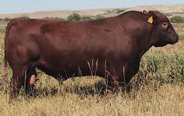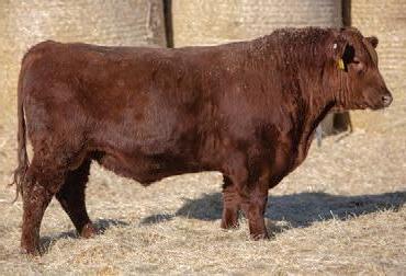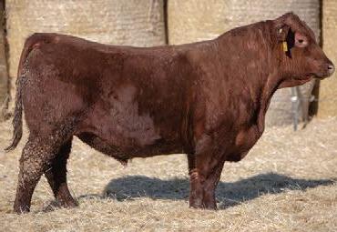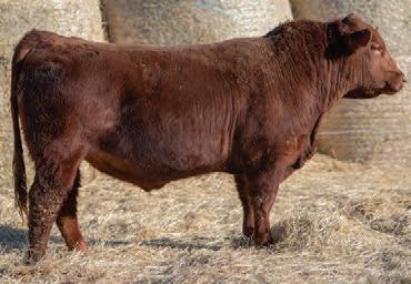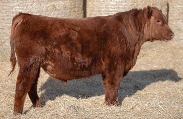 This is a big, long, stretchy, big boned red bull that is made to cover the big pastures. His dam is an easy fleshing, perfect footed cow that is always fat year round and raises a big, heavy calf.