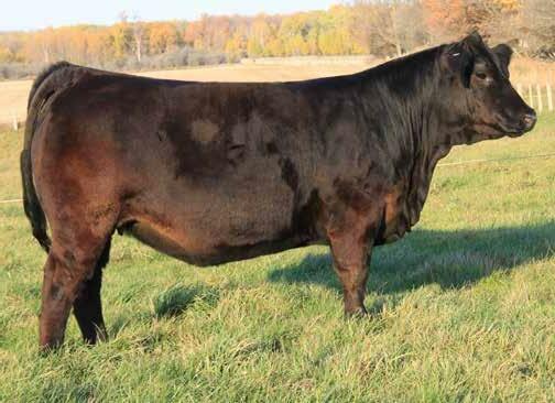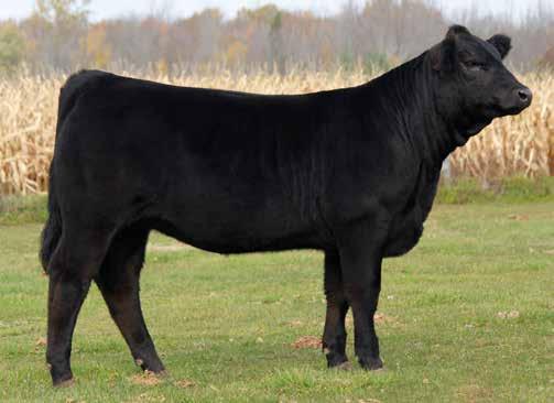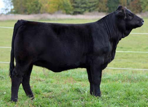 Black beauty right here! She’s long bodied, attractive fronted female that puts it all together in an eye appealing package. She is out of a big framed Avenger female that goes back to Clark’s 132A, who is a foundation cow in our herd consistently producing high performing calves. Juniors who are looking for a calf to show at nationals in Ontario next year look no further, bred to Wulfs Horton for a January calf you can’t go wrong.
