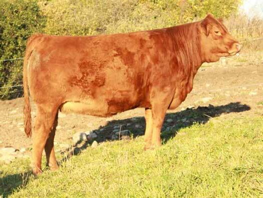 Another BBar/Hawkeye Hulk daughter, this heifer goes back to our “Luzi” family who have been a mainstay of our herd, consistently producing powerful, wellmuscled offspring. This girl is no exception. She is a big, broody type female, and cut in more the traditional Limousin style, with plenty of width, depth and muscling. Her dam-line is also known for great udders. This girl is in calf to Bennville Hemsworth Beauty (Paynes Cracker/Morrisvale Lumberjack), due mid March.