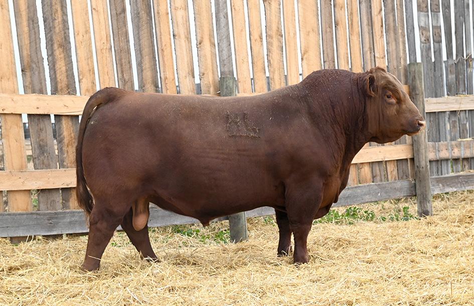 Sired by SLC Peaky Blinder who was a past national champion and sired last years Champion Balancer Female for Bohrson Marketing. Blackbird 190L is a beautiful made female that is very sharp fronted and nice headed . Dark red with a very good haircoat. She had a very level hip and should be a very productive cow. She sells bred to our new heifer bull Fir River Lazer along side his mother they were National Champion Balancer female at Agribition and he went on to be reserve champion Balancer Bull Exposed June 5 to August 25.