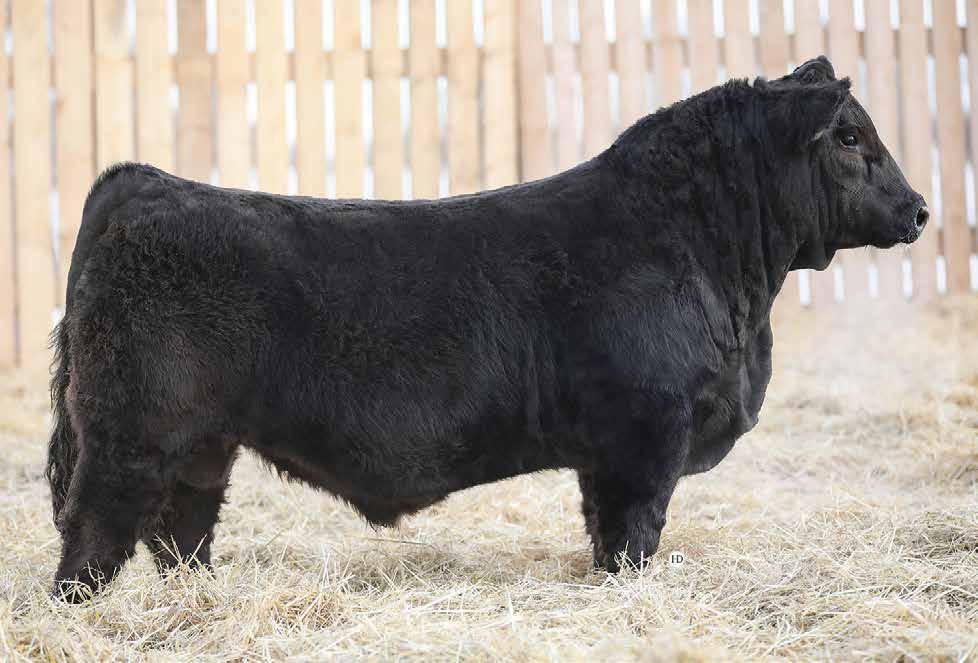 PAW BLK Gretzky 910G is Homo Polled and Homo Black along with being in the top 10% for calving ease and top 15% for birth weight EPD’s. He has definitely grown into a powerful herd bull with so much masculinity and presence to him. He has lots of mass, hip and a very solid big foot under him that has made him and his calves sound on the move. With all that growth and capacity along with great nut size you already know and can see what he is capable of producing. His heifer calves have the depth and mass that he possesses but also have that flashy feminine appeal. His bull calves just keep getting better with age just like him with great hip shape, dominant blaze faced and testicular development. His dam is none other than our Earl cow that is the dam of multiple bulls in our sale so you are able to see the outcome and maturity of these future herd bulls. Take advantage of this unique herd bull offering.