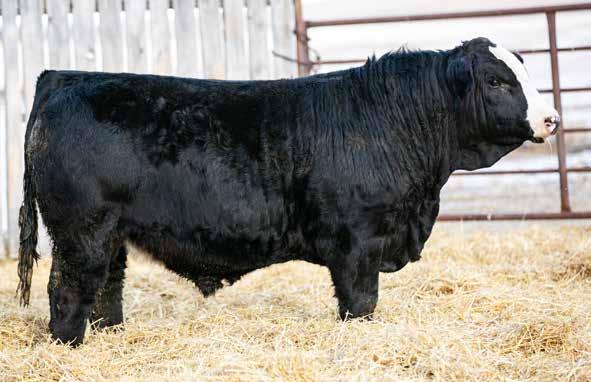 Paramount is our black calving ease prospect this year. Sired by Rust Primetime with an 83 lb birth weight and a CE EPD in the top 12% and BWT EPD in the top 15%. 476M still has good growth and performance with his WWT and YWT EPD’s both in the top 25% (his actual EPD profile is almost all in the green). We really like this bull - he’s got a great look to him with an attractive head and neck extension along with good width and rib shape! His hair coat is awesome! His first calving dam is a daughter of Walk this Way and our old donor cow BGF 930W which makes CMS 274K a maternal sister to the ever popular CMS Sochi 307A. Paramount reminds us a lot of Sochi and we are excited to see what his future holds! He could be the next great black calving ease sire we are all looking for, homo polled & homo black.