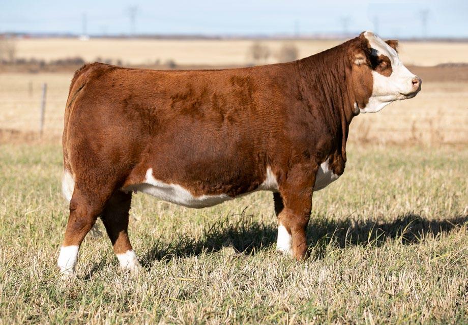 Once again a cow with easy fleshing abilities and udder structure that we strive for. 209M is loose hide and with extra rib expression. We purchased the lead off calve ease bull out of the longstanding Double Bar D program this past spring and put him to work early so expect a Christmas baby from this girl! How sweet will a red baldie calf be for an early Christmas gift!