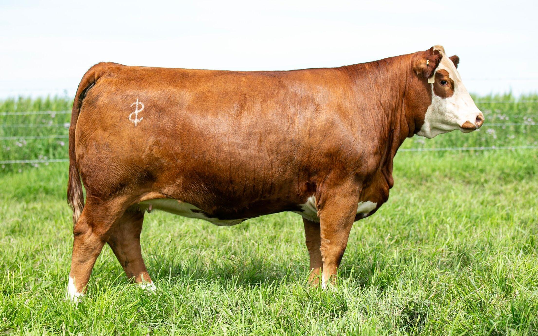 As like any operation, we all strive to build long standing cow families. The Wanda Cow family is one we greatly admire around here. 43M is a great representation of what consistency in a cow family can achieve. This female is possibly the stoutest bred in the offering! She’s got that big bold blaze face with powerful cow presence! A female that is very versatile, with a different twist in pedigree! At breeding time last spring, we all agreed before knowing we would be having a female sale that we all loved 43M. When she came through the chute, we all had the same thought that “next spring we should plan to have her in the flush pen” and while we won’t have this opportunity now, we have a strong feeling wherever she ends up that she will still make her way to the flush pen. Study this one close if you’re searching for a red blaze faced female that could become your next standout female!