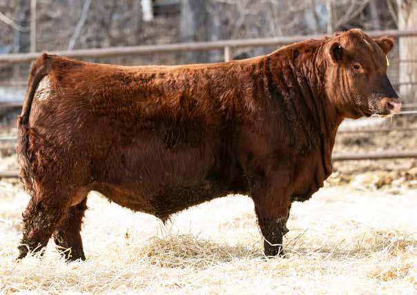 This calving ease herd bull will grab your attention at every angle. A highperformance herd bull with a modest birth. The consistency in this sire group runs deep, dark red, smooth made backed by an exceptional uttered dam. The Sunflower cow family has been a main stay here since the beginning.