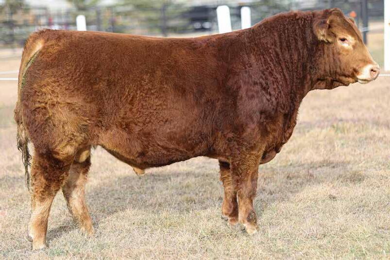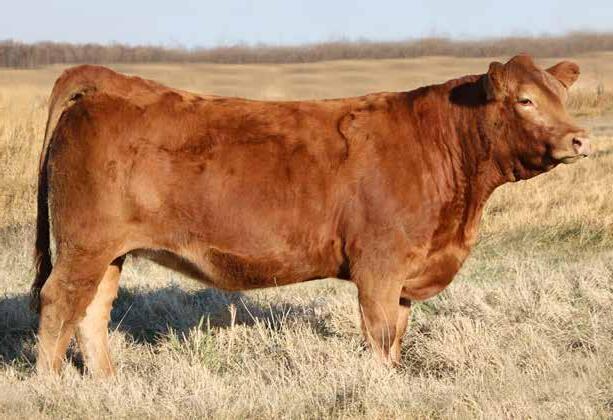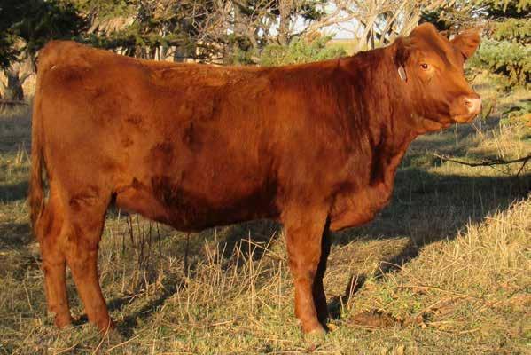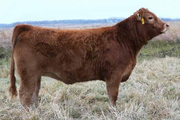 A dark red, hairy female that is bold sprung in her rib shape and stout hipped. A maternal sister was a feature high seller in last year’s sale to Plains Limousin. If you like moderate, stout cattle that come from a productive cow line look closely here.