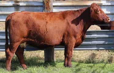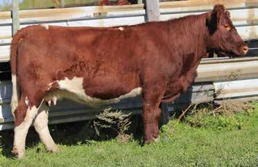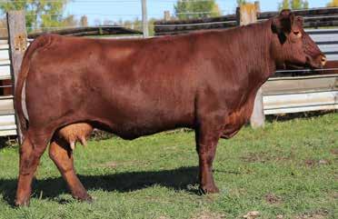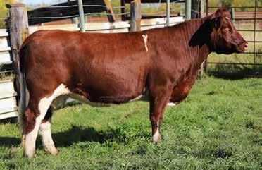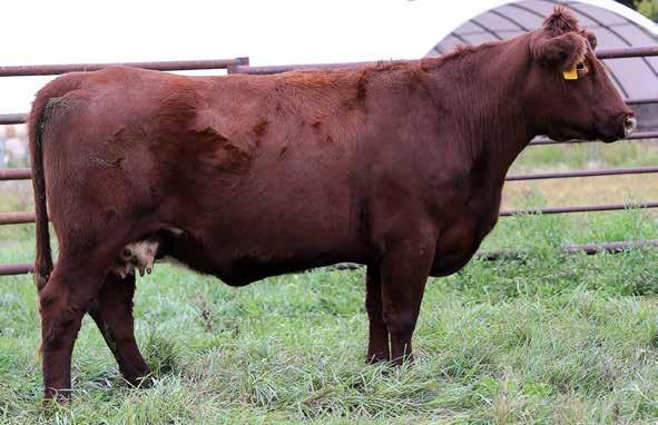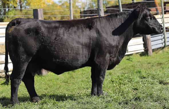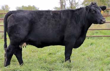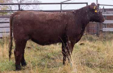 He is son of Wizard and a very productive brood cow that raised calves until she was 11 years old. He is thick but smooth in his muscle pattern. He is free moving, walking on excellent feet. He has an excellent disposi tion. He calves easily siring good growthy calves. He has a pedigree load ed with maternal traits and his daughters look to make great momma cows. There are a number of bred heifers and heifer calves as well as a pretty good bull calf in the sale