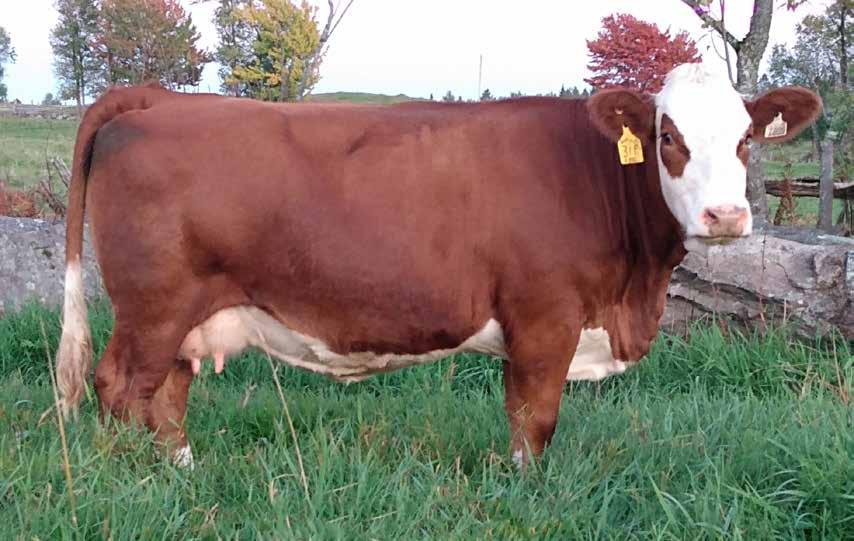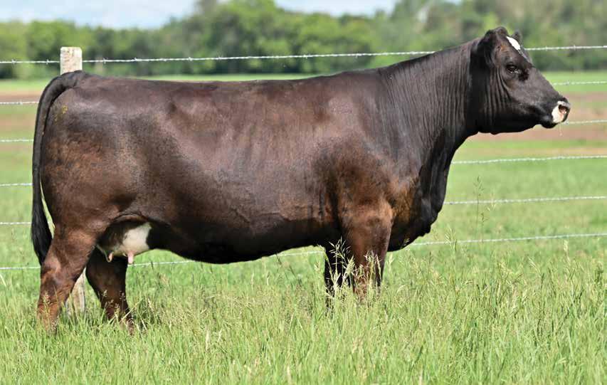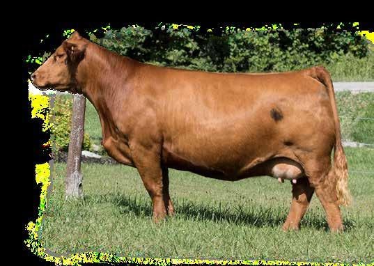 Millie is a product of the first calf crop of Tri-R Big Kahuna and he has done a great job here so far, his calves are going to easily find their way to the front, packed with quality and eye appeal. Big Kahuna himself was selected for his quality, power, dark hair coat, and being a Brooks out of a very proven cow family. Millie’s dam is a Matrix daughter, and those females are very consistent in their type - moderate, easy keeping, and beautiful uddered. Last year’s maternal brother found many friends at our 31st Annual Sale and was sold to Red Top. Millie is packed with predictable genetics on both sides of her pedigree.
