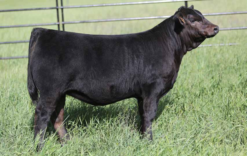 T33 Lacey is a calf we’re really excited about. We always knew 1D was a cow that we should flush and the results speak for themselves. We chose Mr SR High Life to flush with and we are beyond impressed. He passed on his striking eye appeal and great calving ease numbers and gives Lacey a very unique pedigree. Lacey is the exact type of animal we want to produce and the type of animal we want in our herd. She’s very feminine looking throughout her entire body but not giving up any muscle mass. She walks on a great set of feet and she comes by that honestly from her mother. She has a really bright future ahead of her.