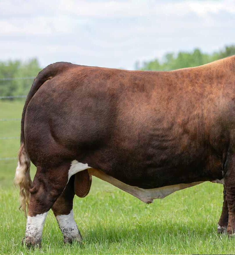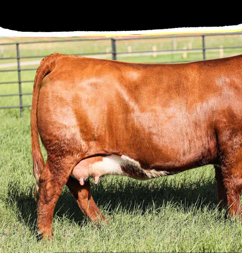 The Jenna cow family is a famous one, and the maternal great granddam of this heifer is the dam of the great SVS Captain Morgan. Jenna females are consistently true production cows - big bodied, easy fleshing, good uddered, hairy, and productive. 4M’s dam is exactly that kind and was selected in the fall of 2023 from the Border City sale. Being a red hided Walk This Way X Jenna combination, there was a high probability of success, and here we are 8 months later with her first calf on offer. This will be the first progeny of W2 Southside to sell. Southside was a popular $48,000 high seller in W2’s 2023 bull sale, a calving ease Top Tier son off their great Flirt donor cow. For this heifer to be built this way is one thing, to have a dam and cow family this way is another, and to be red hided is just the cherry on top. With Jenna, Iron Sugar, and Flirt this is a maternal combination that will absolutely work.