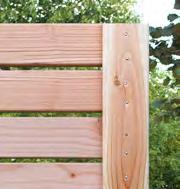 Sur nos quatre modèles de clôtures à lattes, les lattes sont fixées sur les traverses avec des clous filetés spéciaux en acier inoxydable. Les clous sont habituellement placés sur l‘avant. Dans le cas du Douglas non traité ou lasuré, les clous peuvent être placés au dos moyennant un supplément.