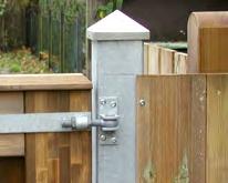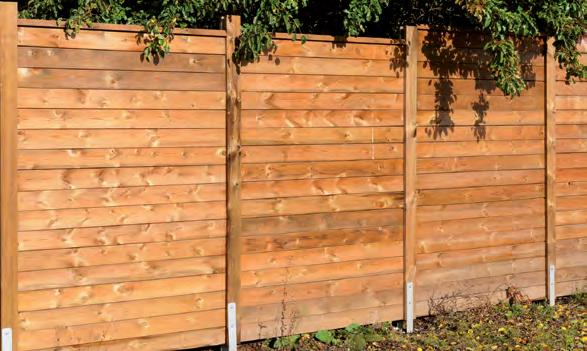 Les panneaux sont cloués sur l‘avant avec des clous filetés en acier inoxydable. Montage standard entre poteaux.