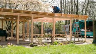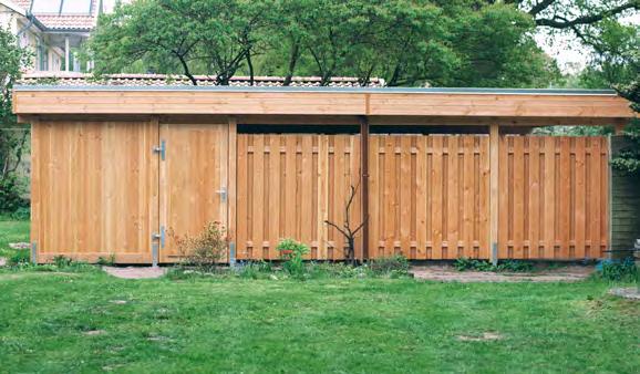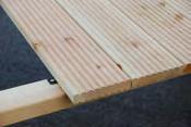 Montage entre poteaux. Les panneaux sont cloués sur l‘avant avec des clous filetés en acier inoxydable.