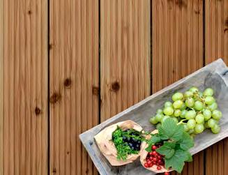 Entretien: Pour entretenir et renforcer la couleur, huiler ou traiter avec un glacis à la cire (instructions d‘entretien de la couleur aux pages 156 et 161). Aucun post-traitement n‘est nécessaire pour augmenter la durabilité. Le bois peut également être «facile d‘entretien».