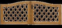 Dans sa patrie, la région côtière, la clôture Friesen arquée reprend le motif des vagues. À l‘intérieur des terres, la forme droite des panneaux de clôture domine. On reconnaît de loin la clôture Friesen grâce au style affirmé et large de ses lattes. Le nombre moyen de lattes par mètre courant est de 7 pièces.