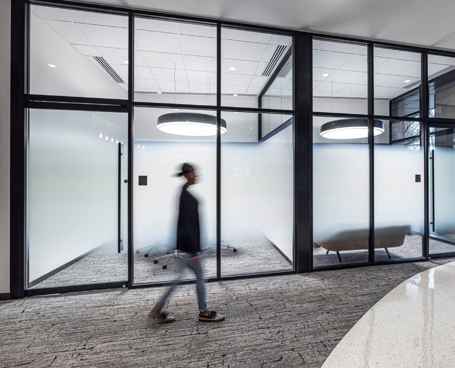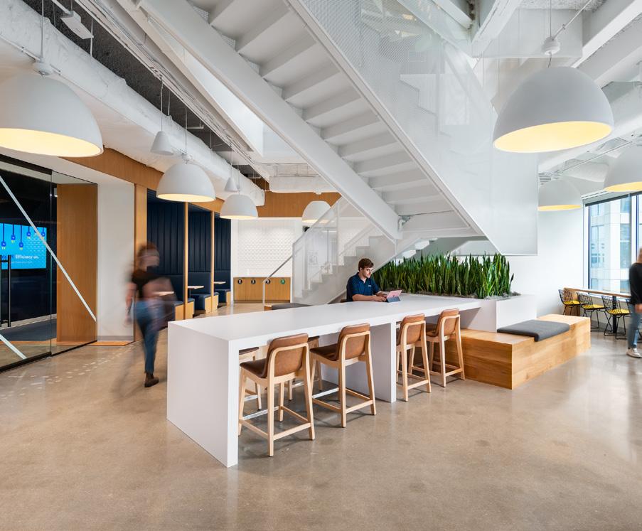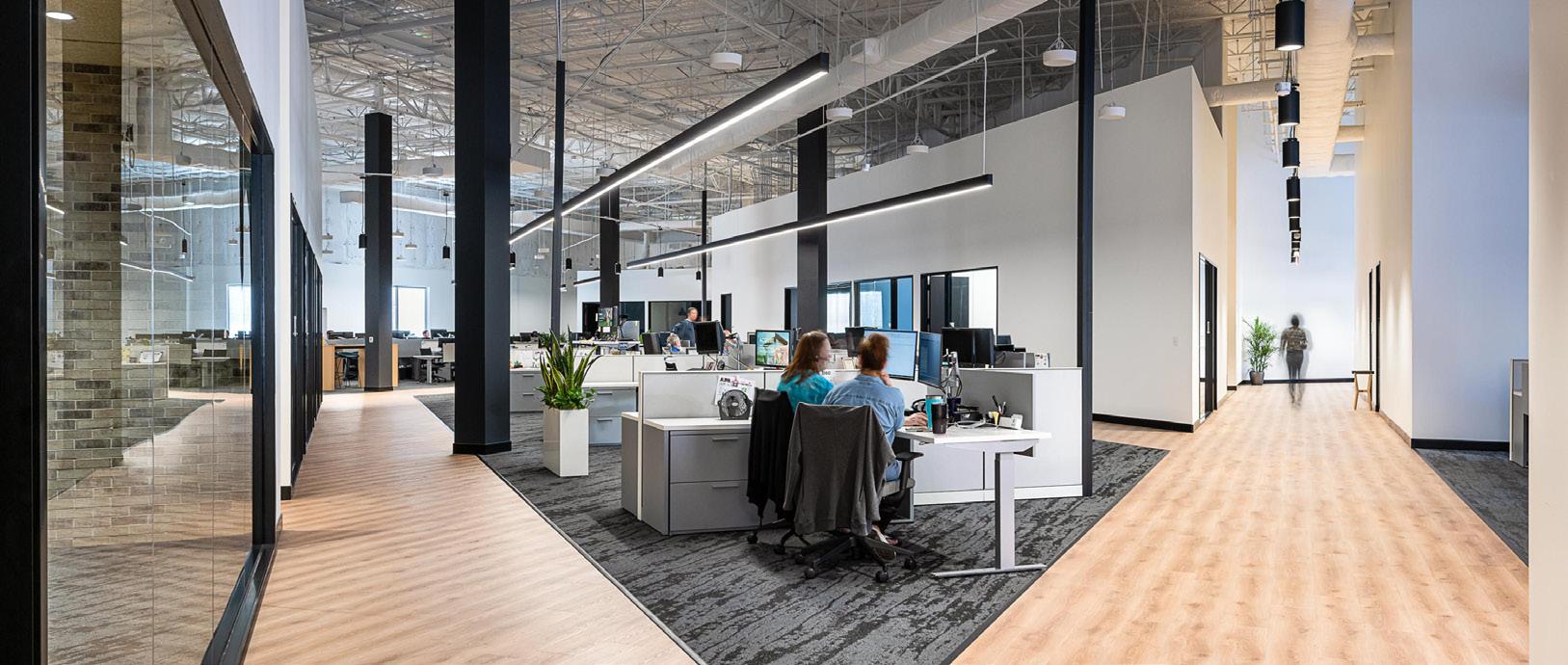 Peloton Land Solutions wanted to provide a space that goes hand in hand with their slogan “Gain Ground” which has a call to the natural. Working with BOKA Powell, they wanted to make sure to incorporate elements of nature, colors such as greens, whites, browns, products and daylighting which allows for a sophisticated rustic look and feel. The client made sure to include amenities such as sit stands, collaborative spaces, breakrooms, daylighting and incorporate technology to provide a environment for all.