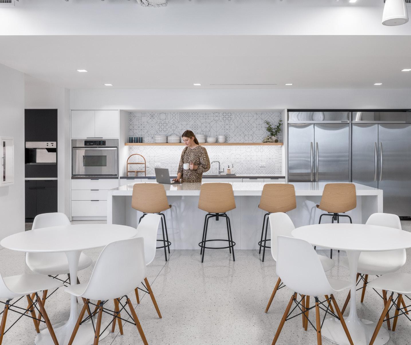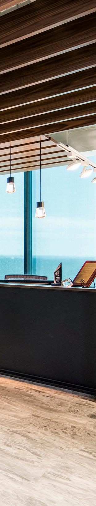 the wellness of employees, the design draws inspiration from nature, infusing daylighting into the space, as well as providing ergonomics and flexibility that cater to the different needs of its users. Celebrating the beauty in repurposed objects, the space reaps the benefits of sustainability and humility while the design elements compliment the contemporary yet timeless workspace.