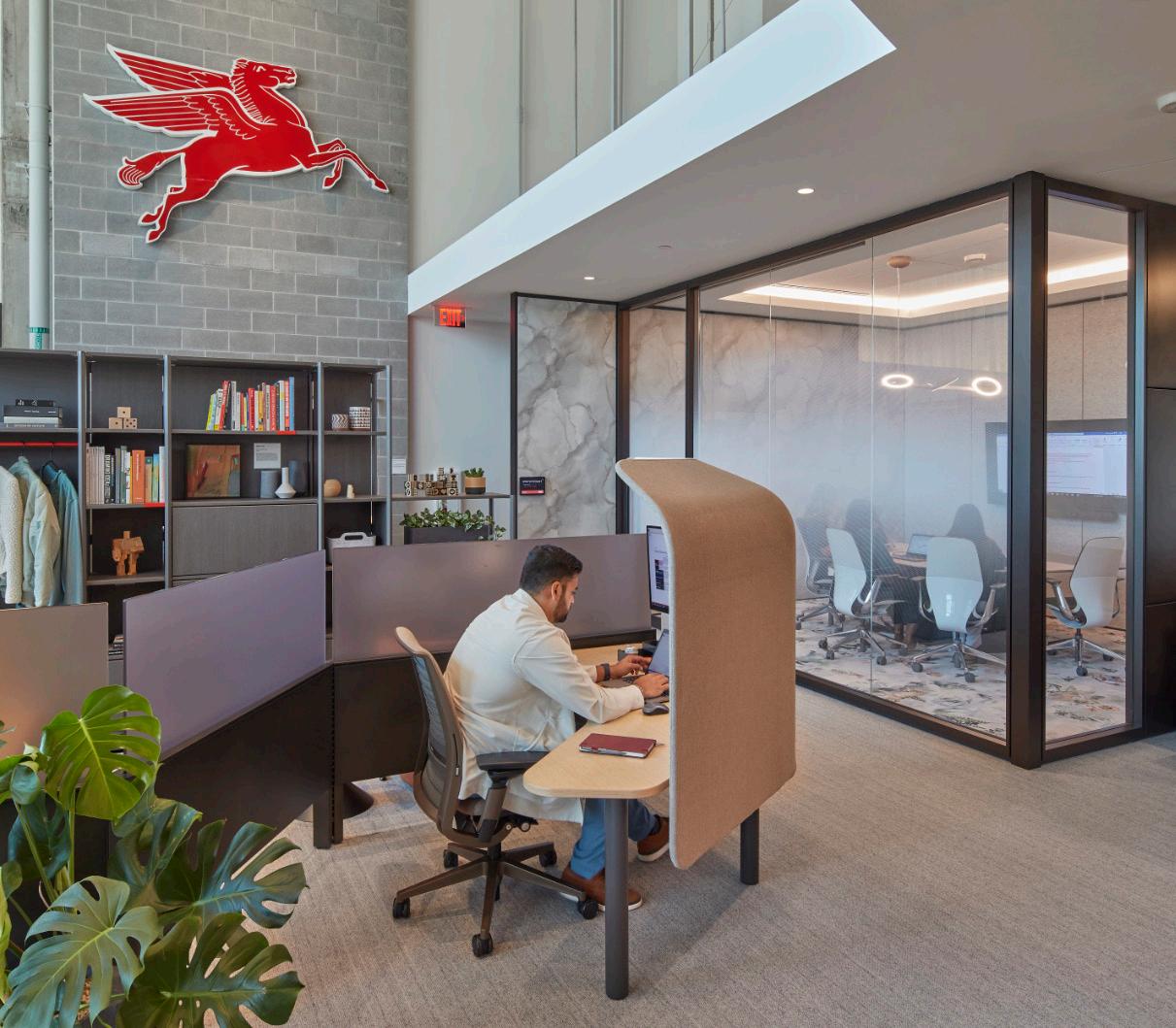 The Steelcase Dallas WorkLife Center, located within Victory Commons One at 2601 Victory Avenue, Suite 300, is one of four hub spaces in the United States outside the Steelcase headquarters in Grand Rapids, Michigan. The cutting-edge showroom was designed to showcase innovative workspaces that blend productivity and user experience for both in-person and virtual settings. Along with these hybrid collaboration areas, the showroom boasts dynamic social hospitality hubs, complete with dining and open lounge meeting spaces, and individual workstations and private offices settings. The space integrates Steelcase solutions with Microsoft and Logitech technologies, allowing the learning commons and variety of work settings to showcase the latest in technology solutions.