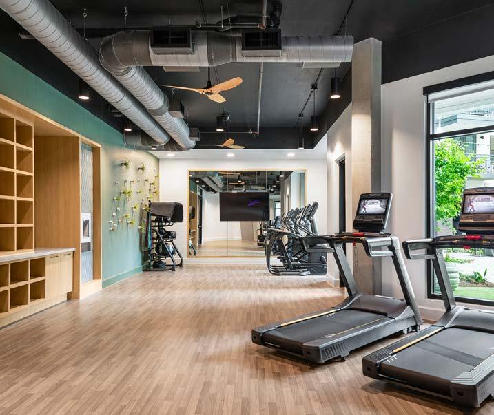 Stonelake engaged BOKA Powell Interiors to give the 5 story wrap style The MET Apartments in Austin, Texas a unique Urban Oasis design. The MET is where form meets function, designed to be the perfect home base for adventures in and outside the city. This project includes a 220,000 square foot apartment building including multiples resident amenities, including: a club house, cardio fitness center, functional fitness center, co-working spaces, mezzanine co-working area, ride-share lounge, and rooftop lounge and terrace.