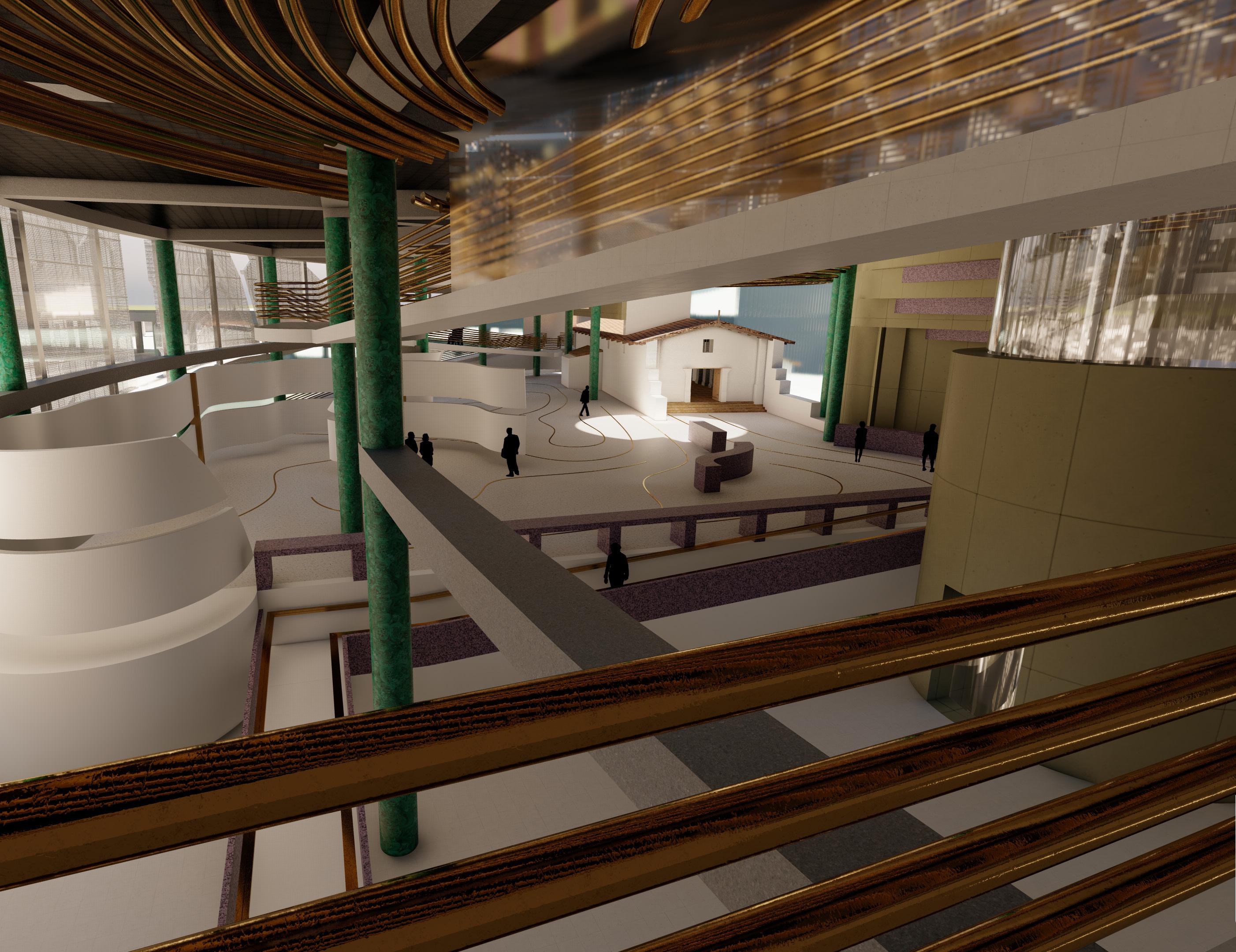 Three lost buildings from three different centuries were chosen to be reconstructed based on their Architectural and historical significance. The Presidio site (now buried under Presidio hill) is on of the first permanent buildings in California by the Spanish. It had a chapel where manywere buried in. The Old Santa Fe Depot station only stayed for 10 years before being demolished for the bigger Spanish colonial style station for the world exposition. The original station had an iconic clock tower, a bright red color, and many facede ornaments/ detail. The San Diego Pantages theater designed by Benjamin Marcus Priteca. The theater’s iconic entrance/ box office is reconstructed as the building entrance.
