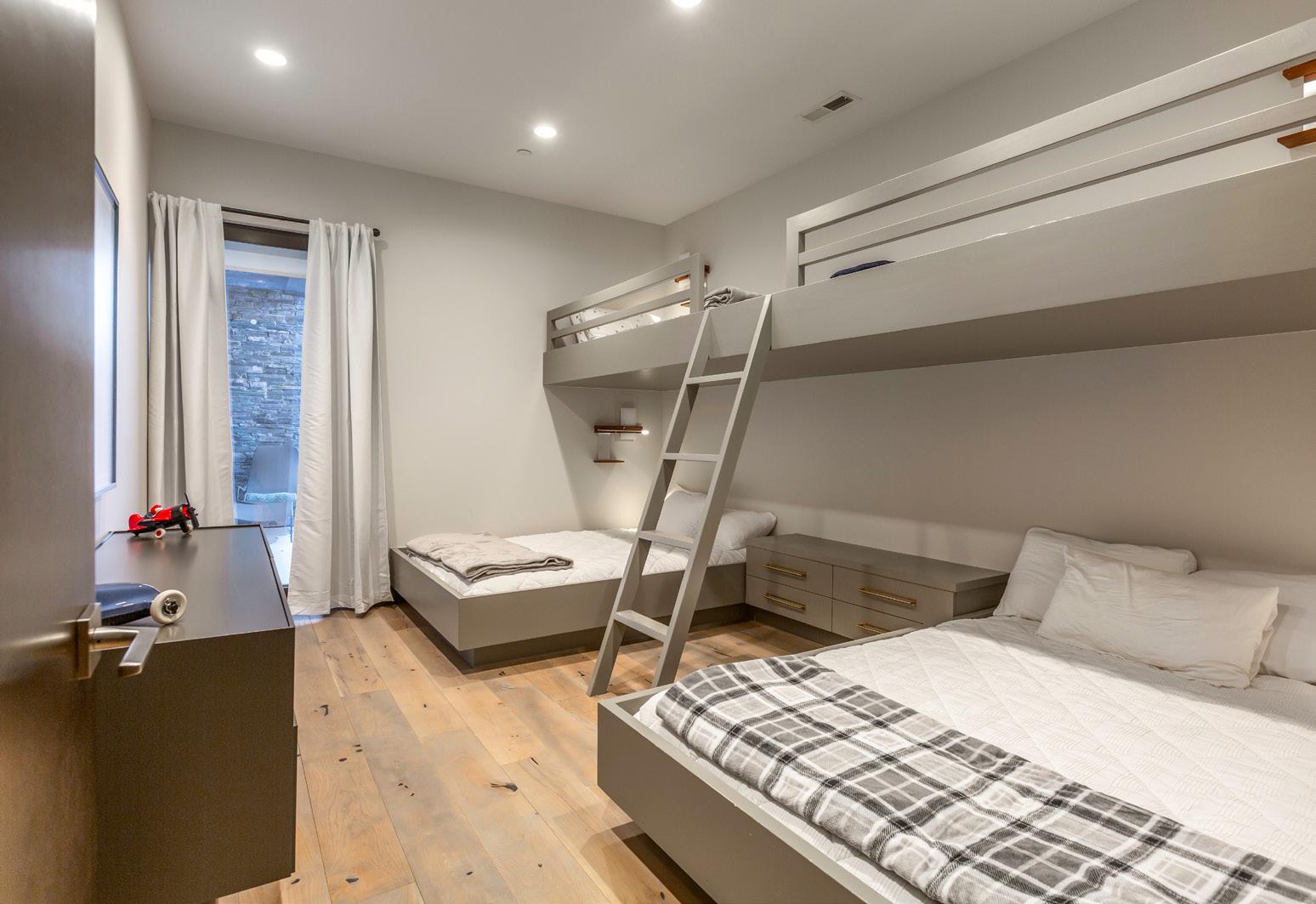 A custom-designed bunk room adds charm and character to this level - perfect for kids, grandkids, or houseguests ready for adventure. Four built-in beds with beautiful accent lighting offer comfort and privacy, while thoughtful touches like a spacious walk-in closet and a double vanity bath ensure this playful space is every bit as practical as it is charming.
