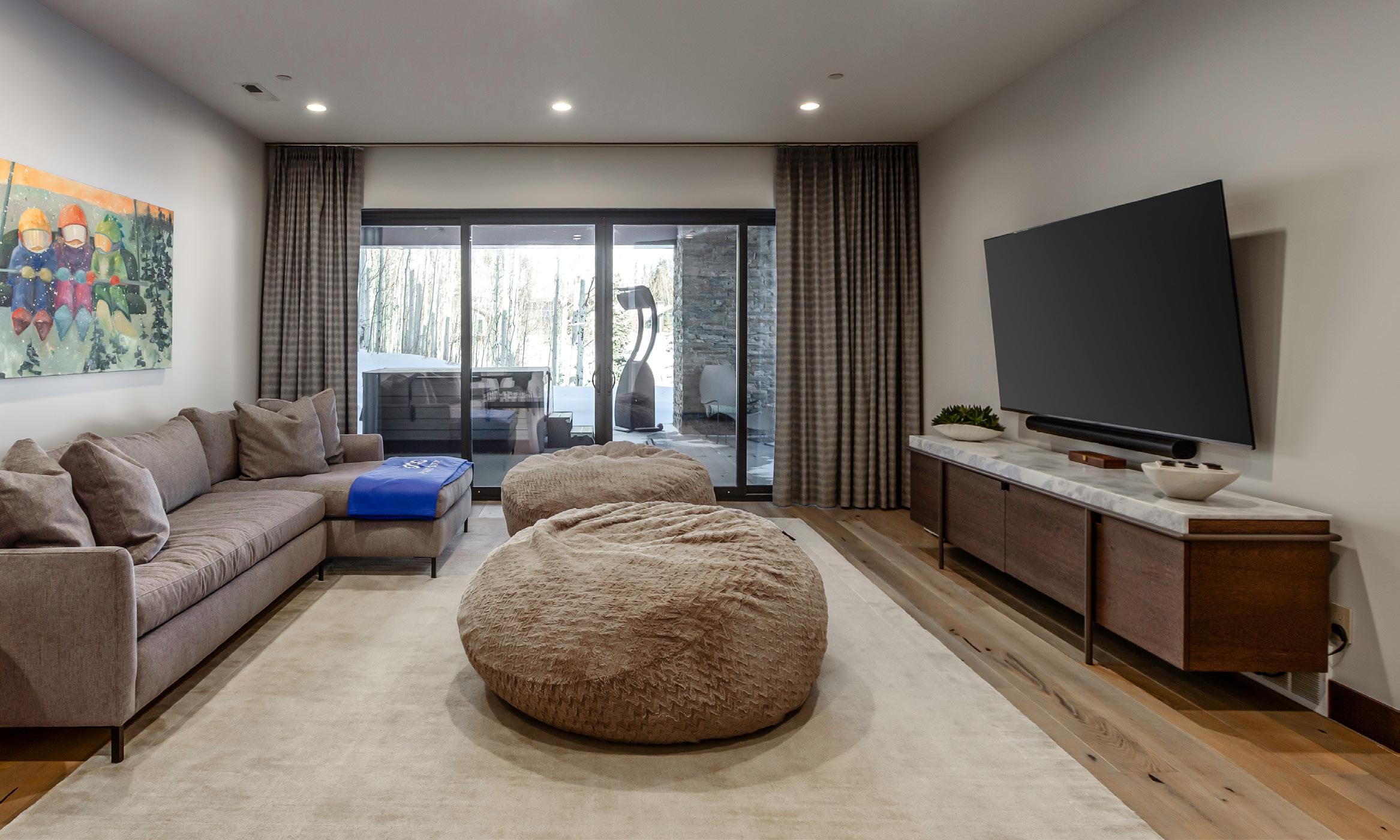 The garden level of 210 White Pine Canyon offers a warm, welcoming retreat: a place where everyday moments feel special. Tucked beneath the main living spaces yet bathed in natural light, this floor invites both connection and calm.