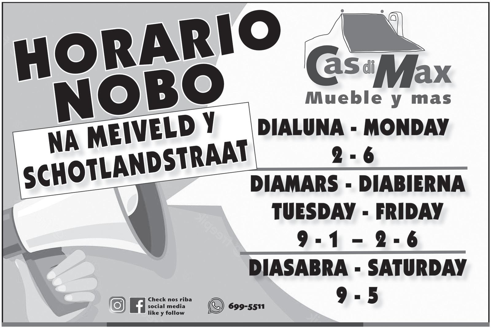 desea henter e comunidad di Aruba un feliz temporada di Fin di Aña y animo na tur esnan cu ta pasando momentonan dificil sea pa motibo di enfermedad of cualkier otro tristesa. No lubida cu semper Señor no ta duna nos un cruz cu nos no por carga. E sa kico ta bon pa cada un di nos.
