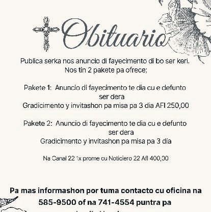 Oracion: Tata celestial duna nos e gracia pa bisa si na bondad y no na tur maldad pa nos por pertenece na bo reino. Amen